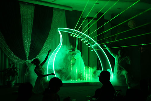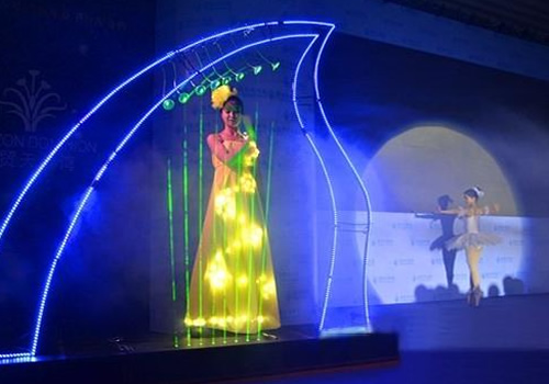 人与激光结合的舞蹈。它结合 了激光表演的震撼性和魔术的 趣味性,演员在激光中配合音 乐可以做出,抓光、打光、折 光、转光等具有新奇性的动作。 激光竖琴融入了乐器的唯美旋 律,也融入了高科技的舞蹈, 户面美轮美奂。