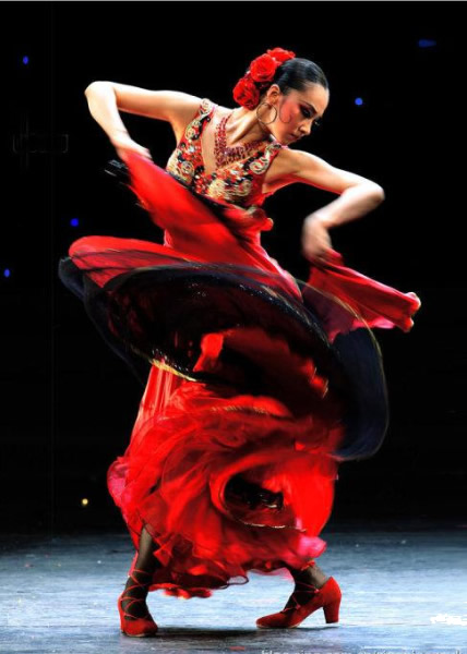 弗拉门戈:诞生在这么一片神秘莫测的土地上,不论是深沉沧桑的歌曲还是轻盈灵动的舞姿,或热情奔放、汹涌 澎湃的舞动,弗拉门戈总给人以自由、生动、鲜活的激情。西班牙经过了几个世纪的漫长历程才将弗拉明戈艺术孕育 成型。如今,弗拉门戈俨然成为了具有西班牙特色和代表性的艺术之一。秉持了吉普赛的自由随性,融合了欧洲的高 贵华丽以及美洲的奔放热情的弗拉门戈早已响誉世界舞台,被越来越多的人接受和喜爱。